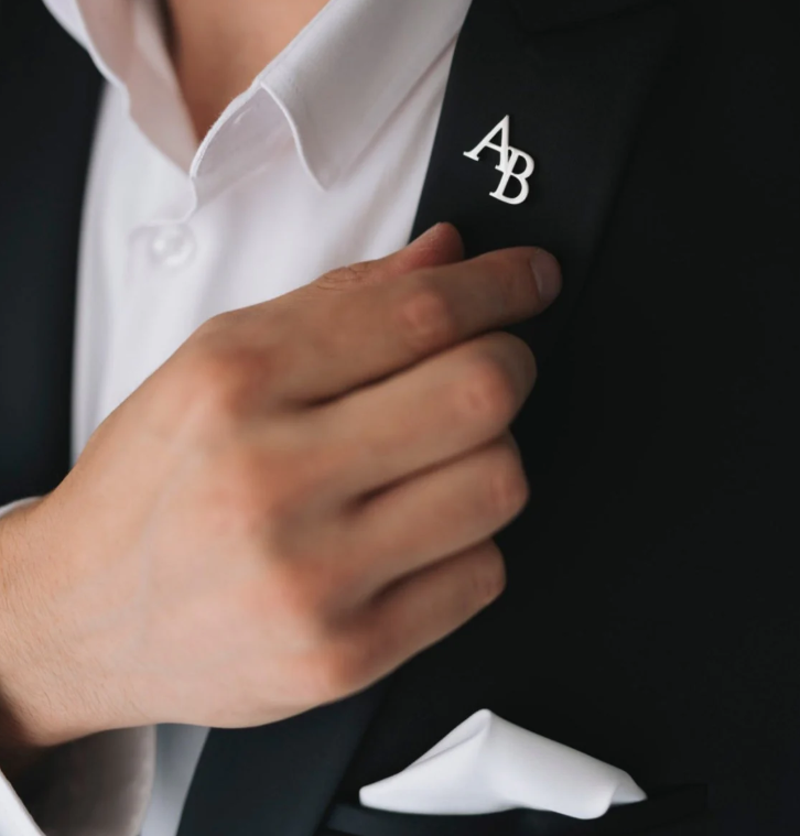 This personalized brooch features custom initials in durable 925 Sterling Silver . A perfect addition to any groomsmen's suit for a personalized touch, or as a gift for any special occasion.