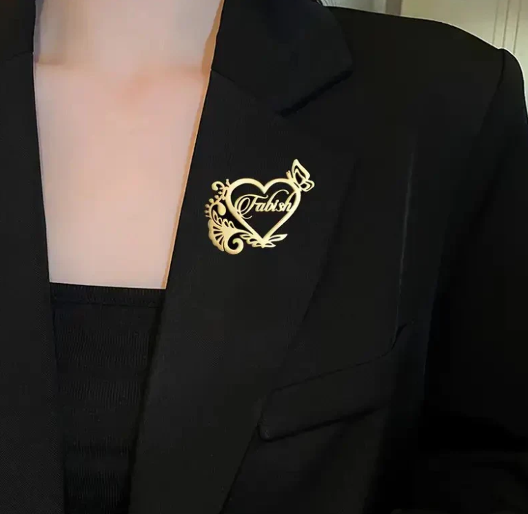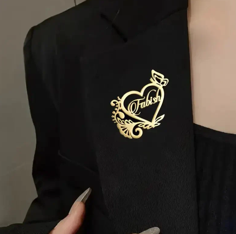 A Personalized Name Designer Heart Brooch is a custom-crafted accessory featuring a heart design with your name or initials elegantly engraved. It combines luxury and sentiment, making it a perfect gift or stylish addition to any outfit.