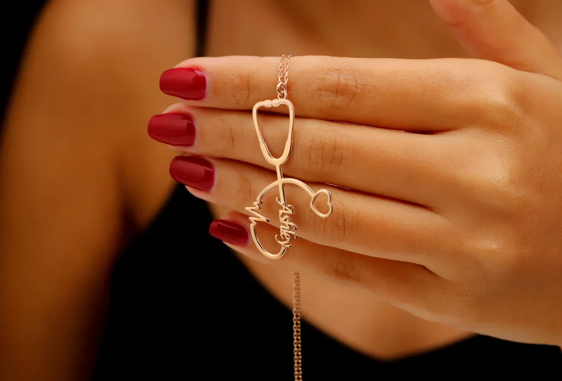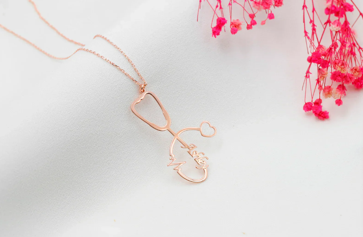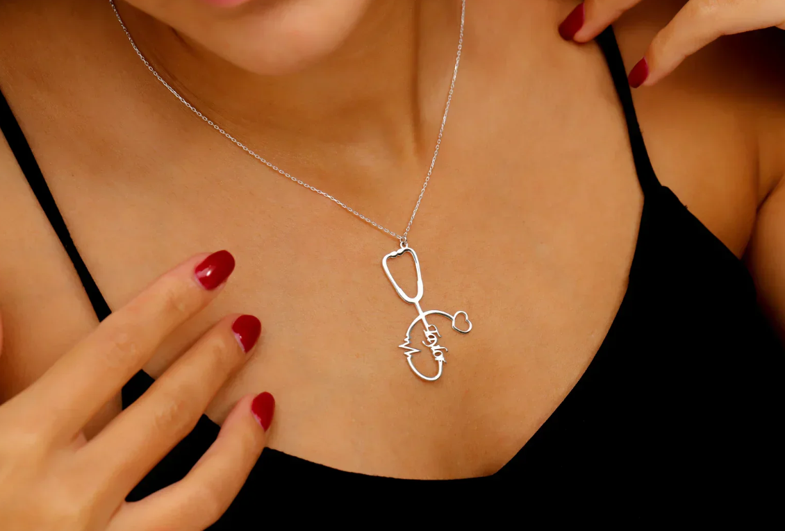 Personalized Stethoscope Necklace with Name, Nurse and Doctor Jewelry Gifts, Custom Stethoscope Pendant, Everyday Wear Medical Student Gifts
