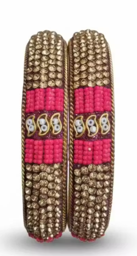 Pink Bangles Gold Beaded Bangles Traditional Indian Jewelry Set of 2 Kada Set
