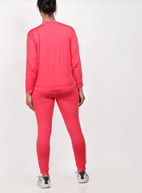 Pink Lycra Blend Polyester No Graphic Print Track Suit For Women