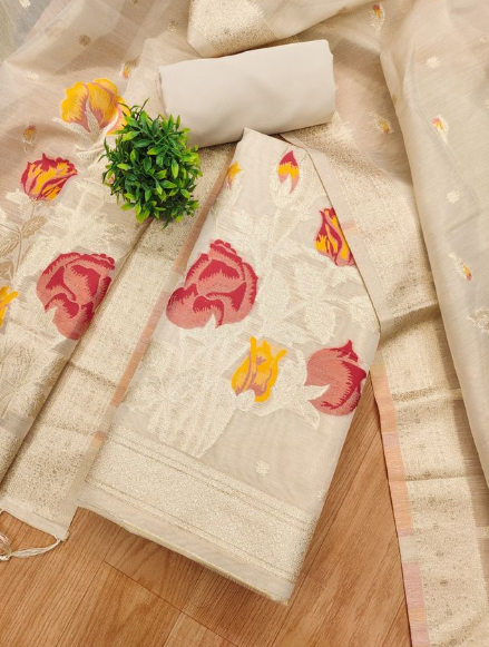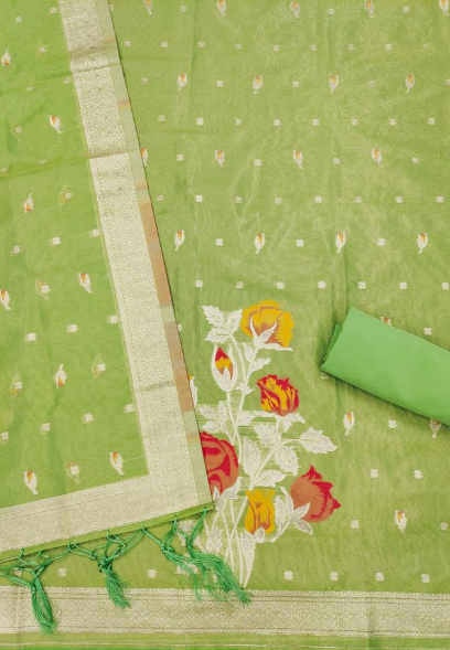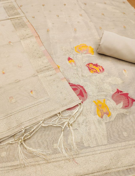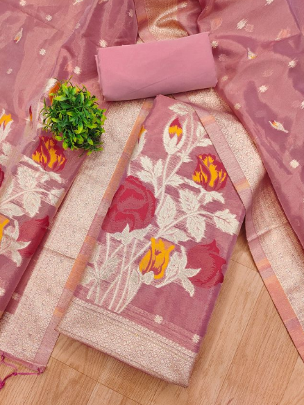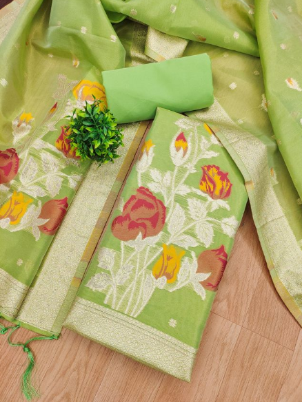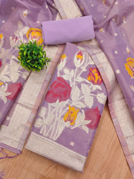 - πͺ©SHIMMER BANARASI ZARI WEAVING DRESS MATERIAL π