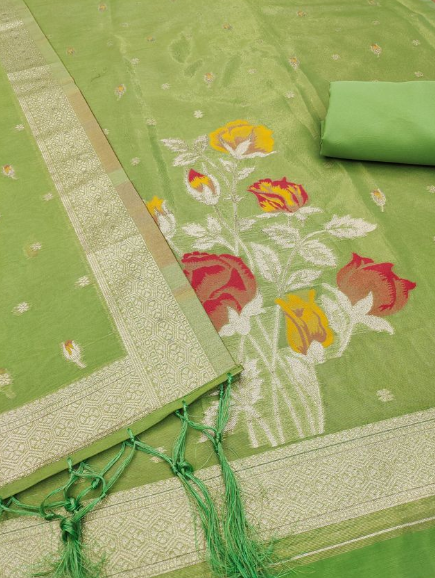 Pista Green Floral Print Suit Dress Material with Dupatta