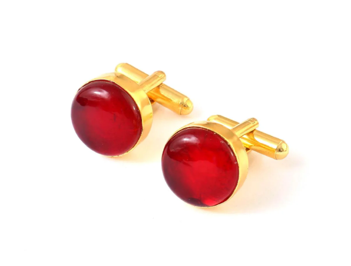 Plane Natural Ruby Red Crystal Gemstone Cufflinks