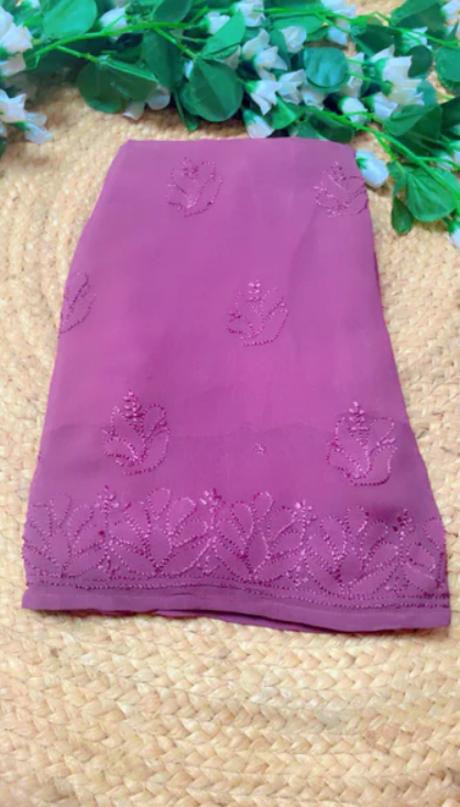 - Work: Full-front jaal design with fine handcrafted shadow Resham (thread) Chikankari