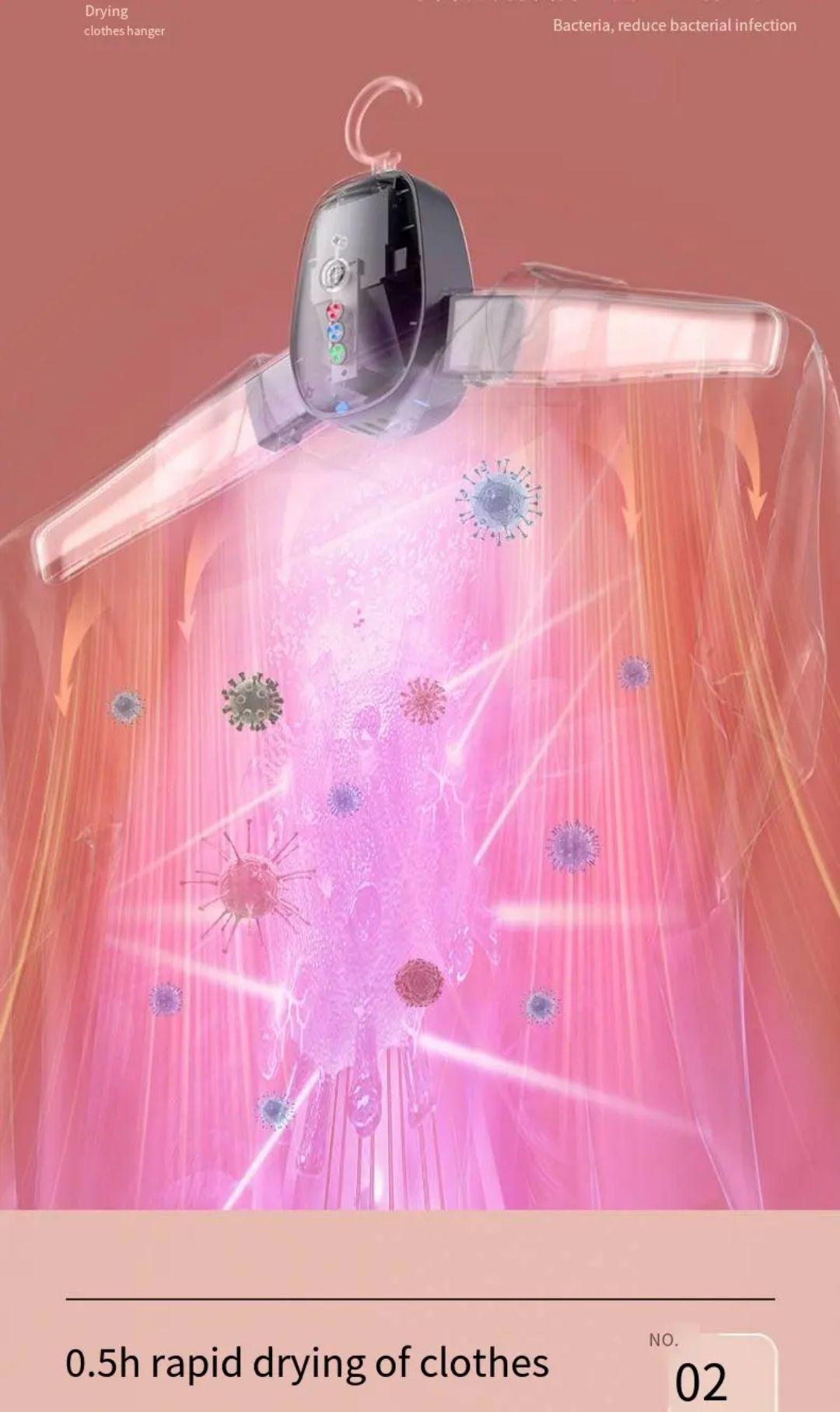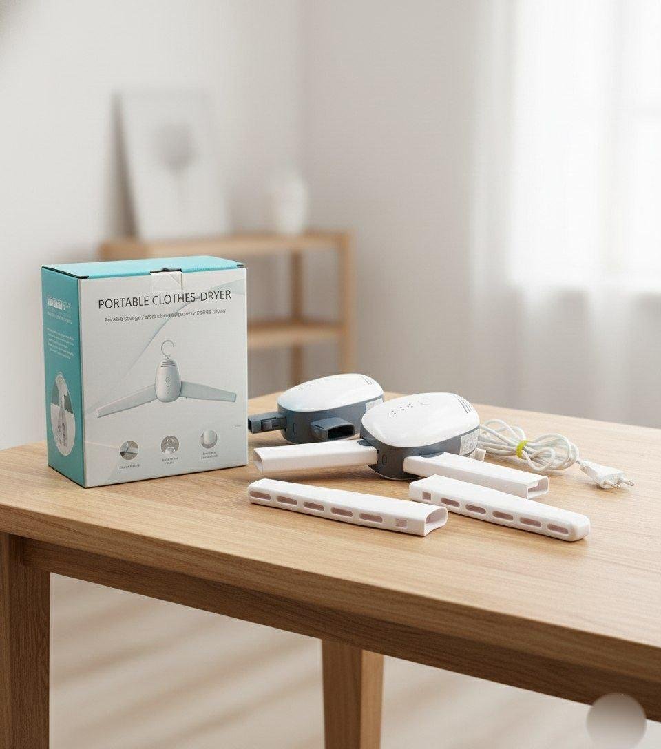 - Dual Mode Drying Switch effortlessly between hot and cold wind modes to suit your fabric type, ensuring gentle yet effective drying for clothes, shoes, and more.Smart Timer Function Built in timer settings let you select your preferred drying duration for hands free convenience and energy savings.Compact Travel Friendly Lightweight and foldable design makes it ideal for travel, business trips, or dorm roomsdry your essentials anywhere, anytime.Multi Purpose Dryer Designed for clothes, shoes, and delicate garments, this versatile hanger style dryer is perfect for daily use or emergency drying.Safe Efficient Drying Features overheat protection and energy efficient performance to dry items quickly without damaging fabrics.