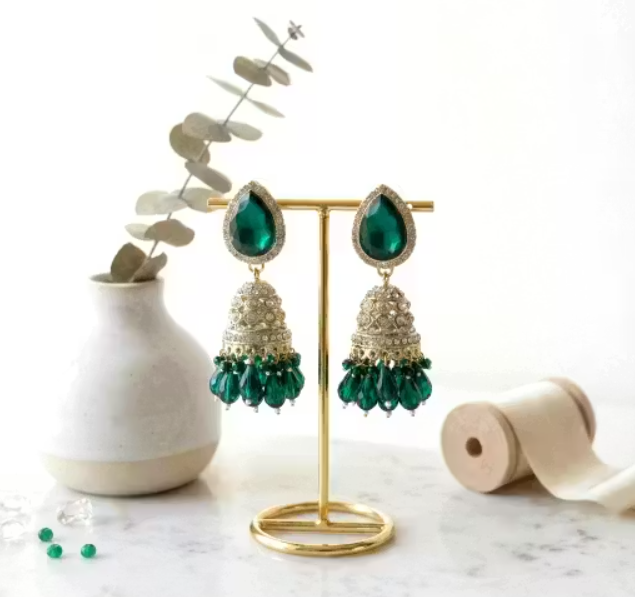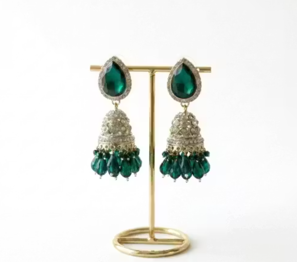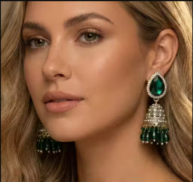 Premium Emerald Green Stone Jhumka Earrings for Women & Girls