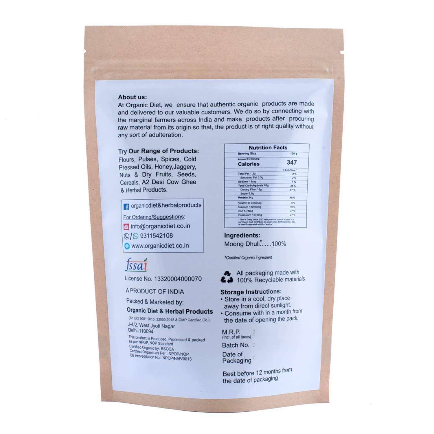 - Type: Organic Moong Dal Dhuli / Split Mung Bean Dal β Unpolished