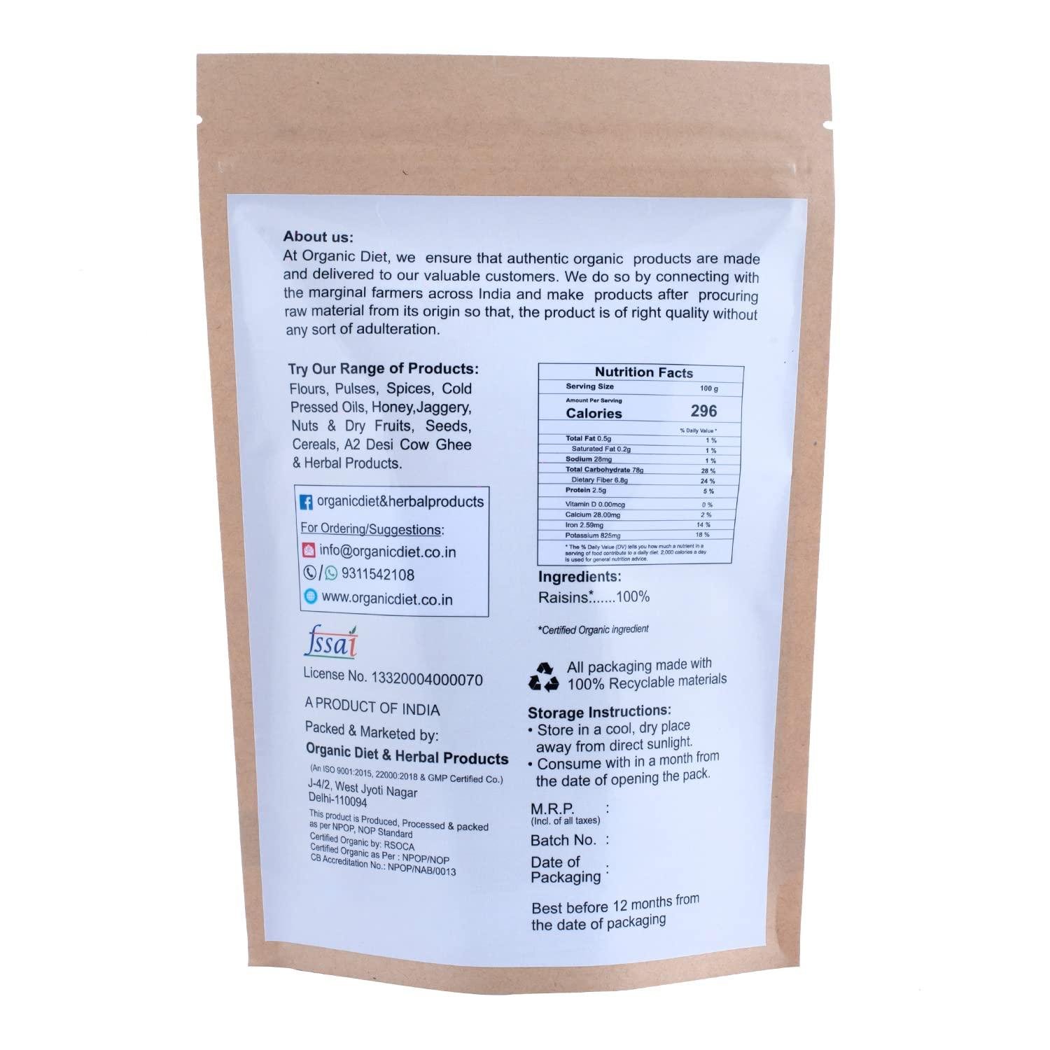 - Type: Organic Raisins (Kishmish) โ Whole