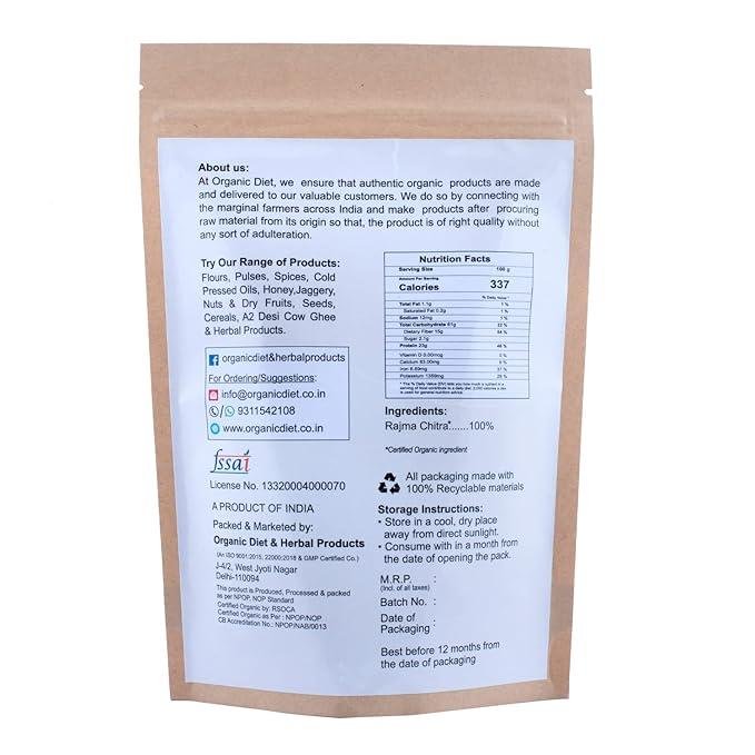 - Type: Organic Rajma Chitra / Red Kidney Beans β Whole, Unpolished
