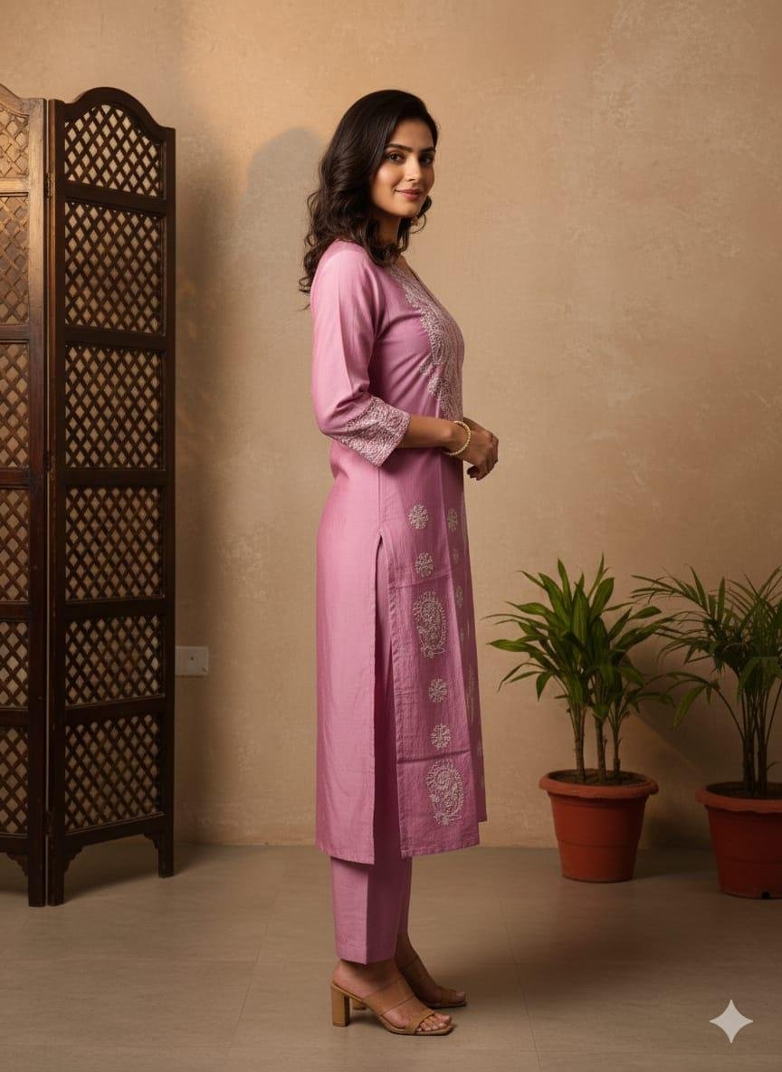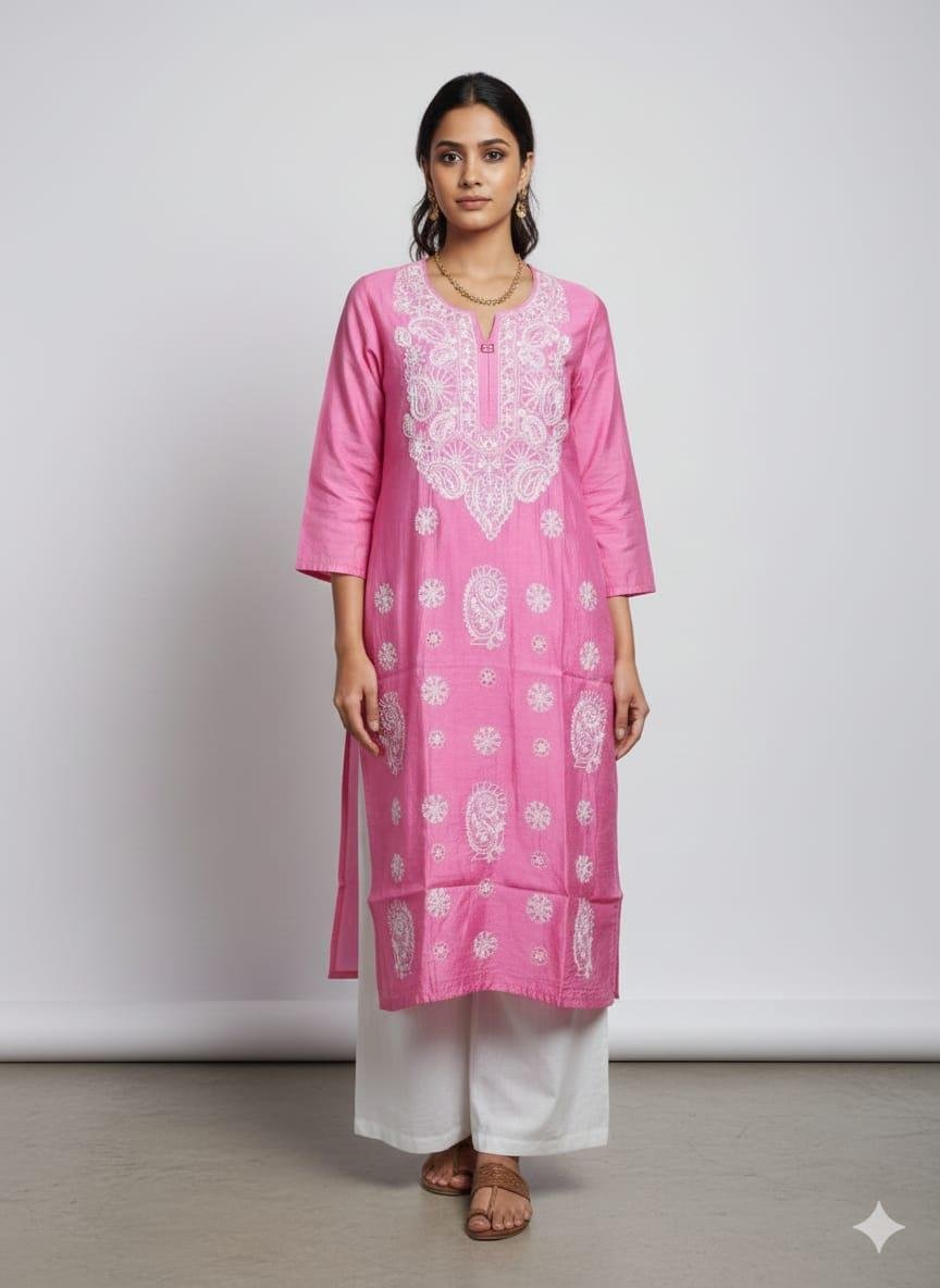 Pure Chanderi Chikankari Kurti With Mukesh Add-On