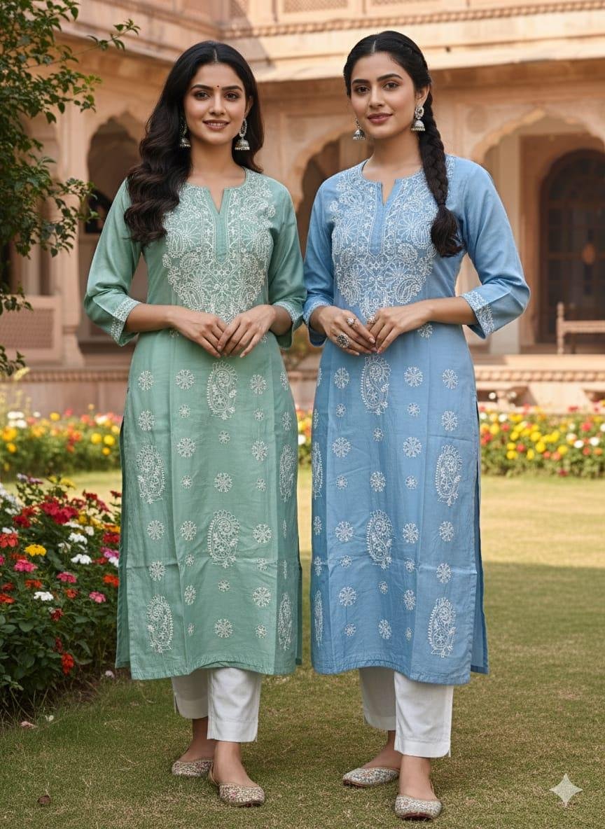 Dyeable fabric pure chanderi chikan kurti with mukesh add-on fanda and bakhiya work which goes with every kurta and enhance your personality can be dyed any customized colors of your choice.