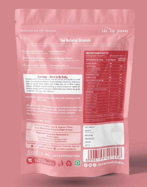 EverNuts Pure Pink Salt Makhana — minimal seasoning, maximum crunch.