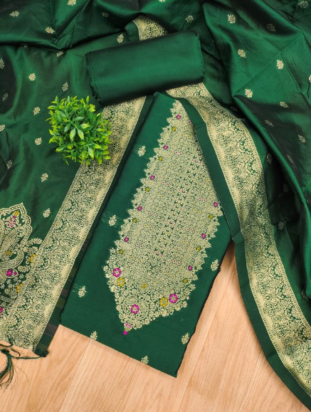 Pure Zari Banarasi Silk Suit Kashmiri Work Dress Material for Woman