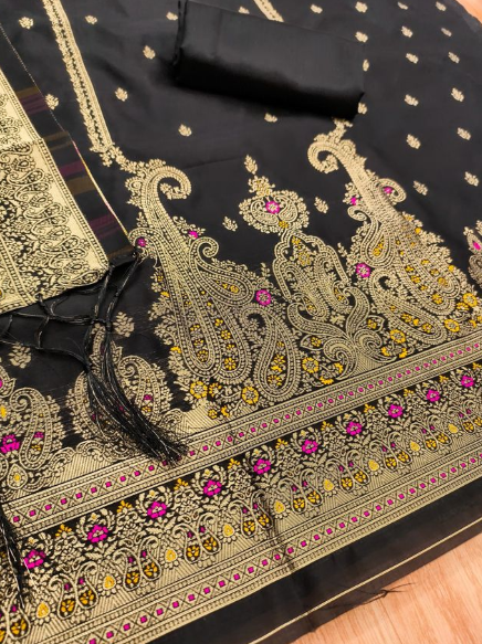 • -Pure zari soft lichi Banarasi silk