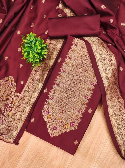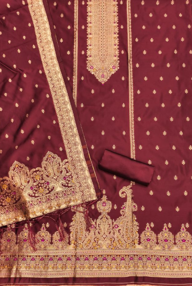 Pure Zari Banarasi Silk Suit Kashmiri Work Dress Material for Woman
