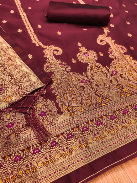 - -Pure zari soft lichi Banarasi silk