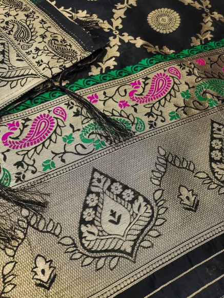 - -Pure zari soft lichi Banarasi silk