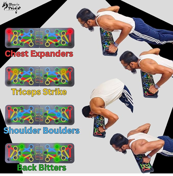 - Push-up Board: I didn’t find a specific Muscle Drago push-up board + gripper combo online — but there are similar push-up board sets with a hand gripper included in the market if you want a full upper-body.
