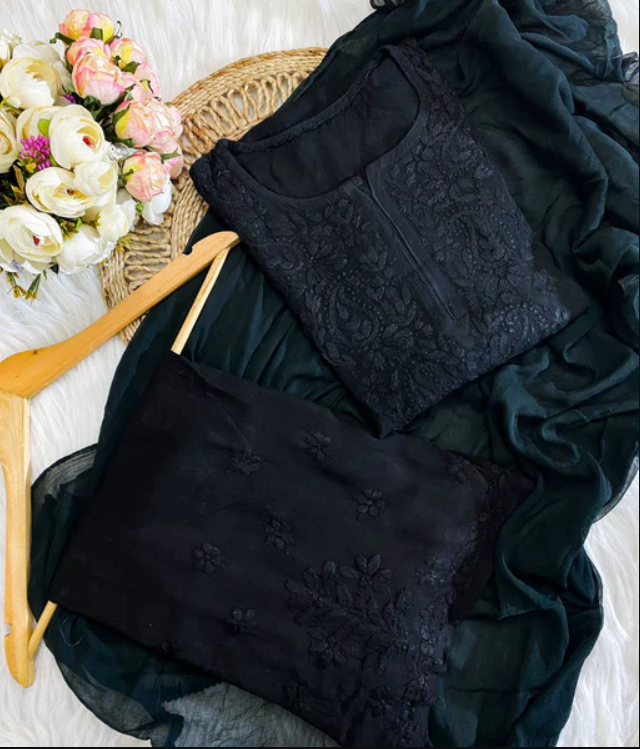 RADHIKA Black Modal Chikankari 3 Piece Set