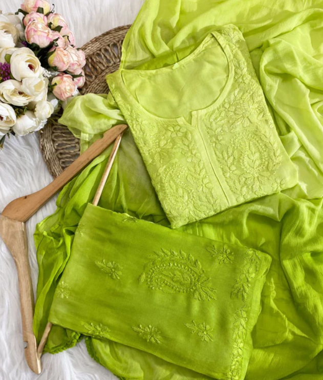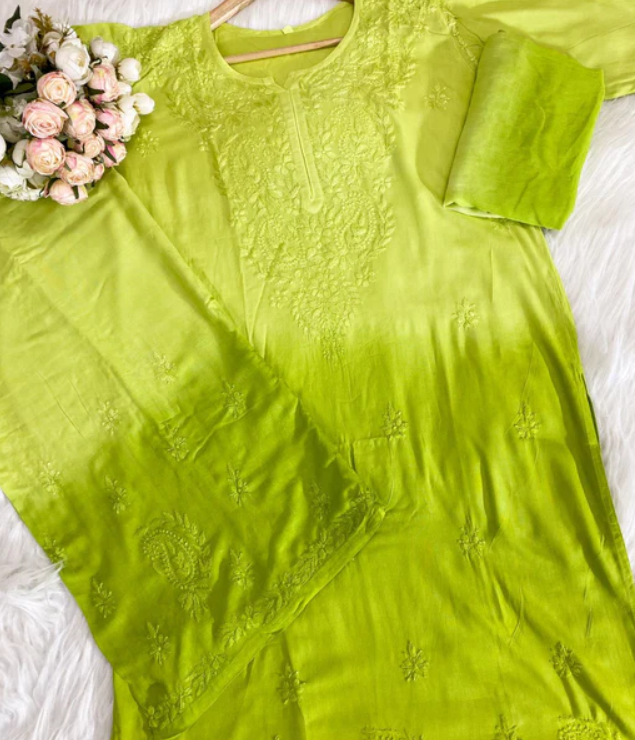 RADHIKA Lemon Green Modal Chikankari 3 Piece Set