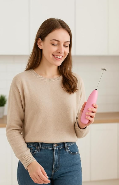 - RECHARGEABLE CONVENIENCE: USB powered milk frother with sleek pink design for easy charging and portable use - perfect for home, office, or travel coffee making
