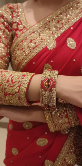 Red Bangles Gold Kada Set Traditional Indian Jewelry Bridal Bangles Wedding Jewelry Festive Wear