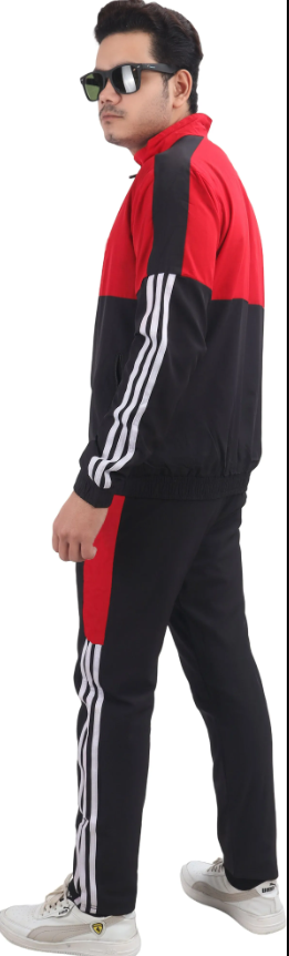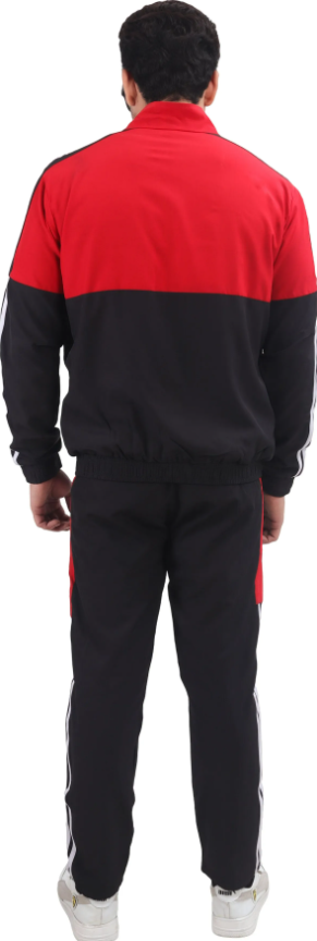 Red Polyester Lycra Blend Zip Colorblock Track Suit For Men