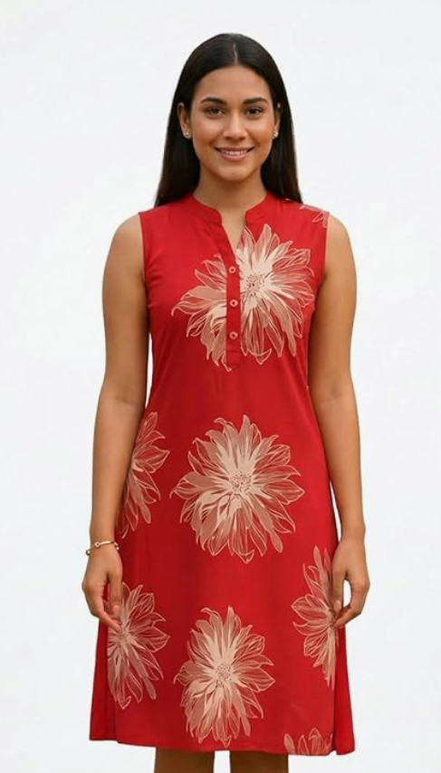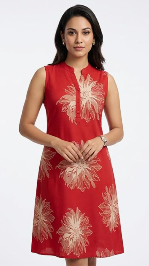 - ELEGANT DESIGN: Sleeveless A-line dress in vibrant red featuring eye-catching golden floral print for a sophisticated and festive look