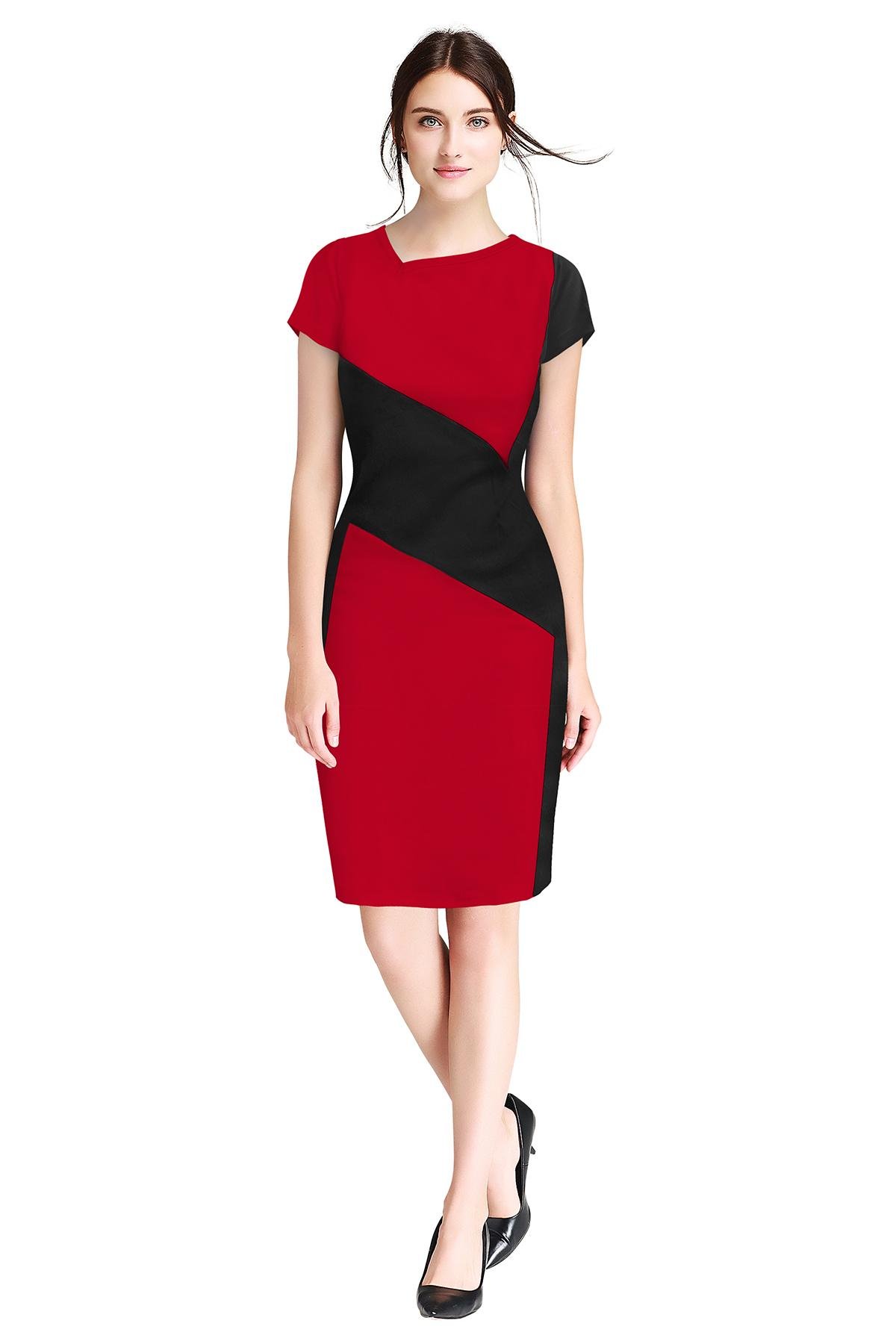 Red solid fit & flare dress Round neck Short, regular sleeves Mini length in straight hem Knitted fabric