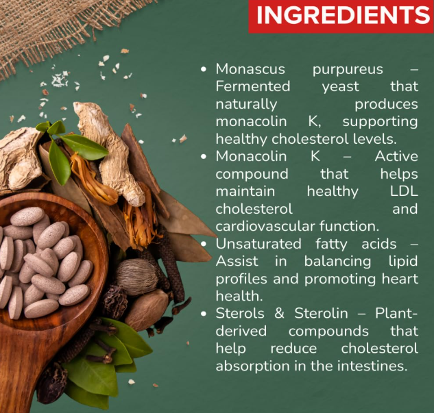 - Supports Heart Health: Red yeast rice naturally contains monacolin K, which may help maintain healthy cholesterol levels.