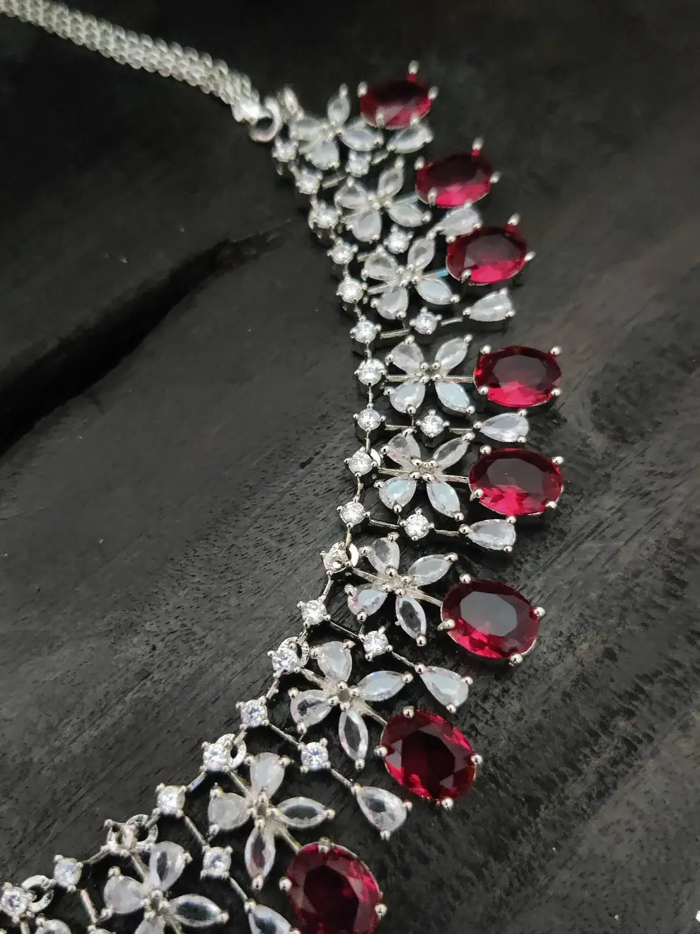 ✨ Sonamone Silver-Toned American Diamond Necklace Set (White & Maroon) ✨