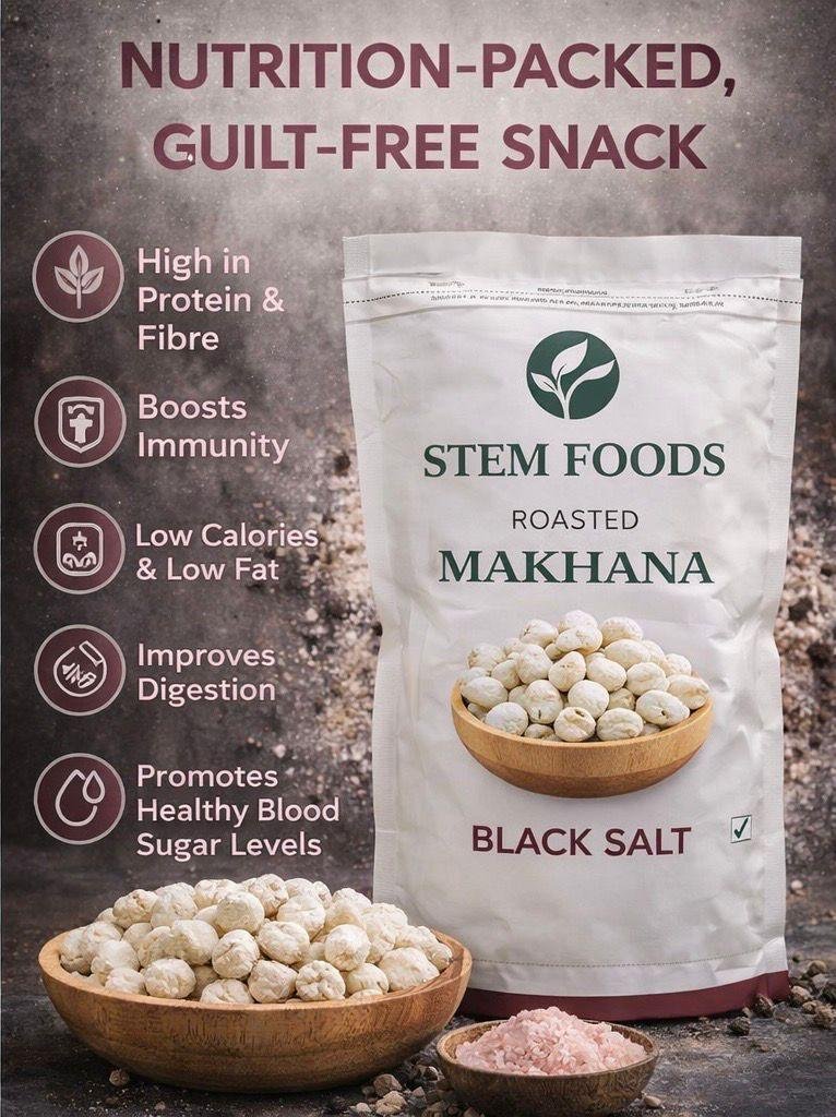 Enjoy a tangy twist on a healthy snack with roasted black salt makhana. These crunchy fox nuts are lightly seasoned with flavorful black salt, delivering a unique and savory taste. Rich in protein and fiber, they support digestion and help boost immunity while remaining low in calories and fat. Packed with antioxidants and known to promote healthy blood sugar levels, this makhana is a perfect guilt-free snack for any time of the day. Carefully roasted for optimal crunch and nutrition, it’s a wholesome choice for mindful eating.
