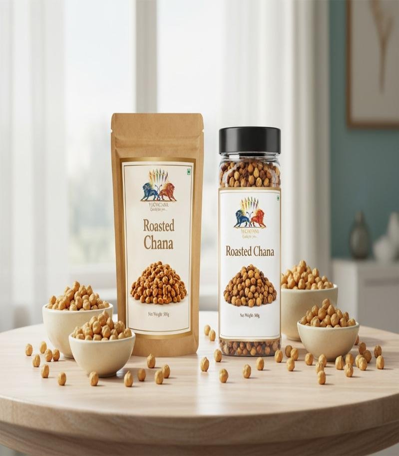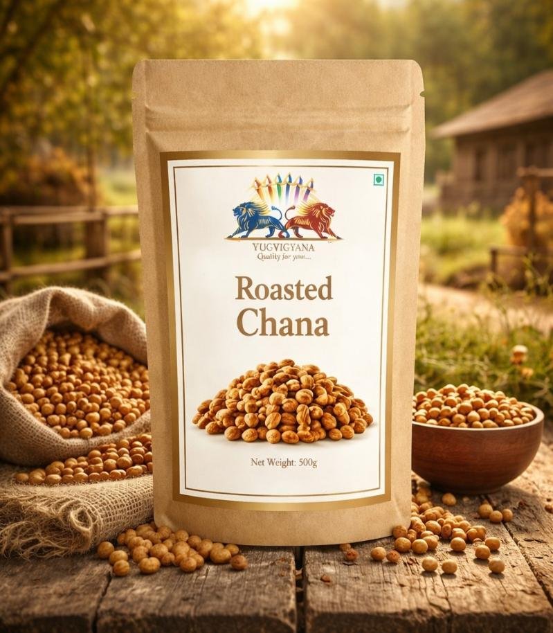 Discover the perfect blend of taste and nutrition with YUGVIGYANA's Premium Roasted Chana. Our carefully selected chickpeas are roasted to golden perfection, delivering a satisfying crunch with every bite.