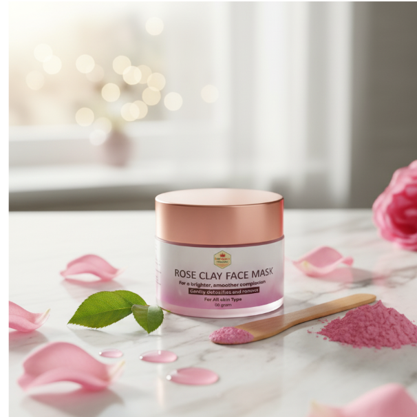 A soothing and exfoliating Rose Clay Face Mask enriched with Kaolin Clay, Aloe Vera, Licorice & Rose Powder to detoxify, tighten pores, and restore skin smoothness. Leaves your skin soft, refreshed, and naturally glowing.