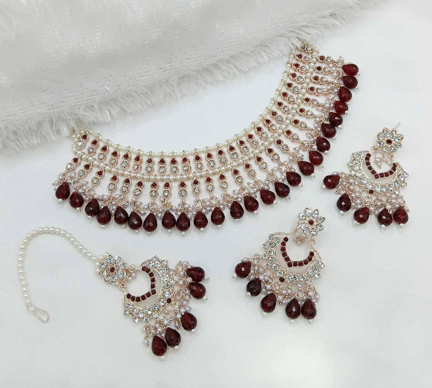 - Discover the enchanting beauty of the deep pink colored rose gold finish necklace set the pinnacle of elegance for weddings.