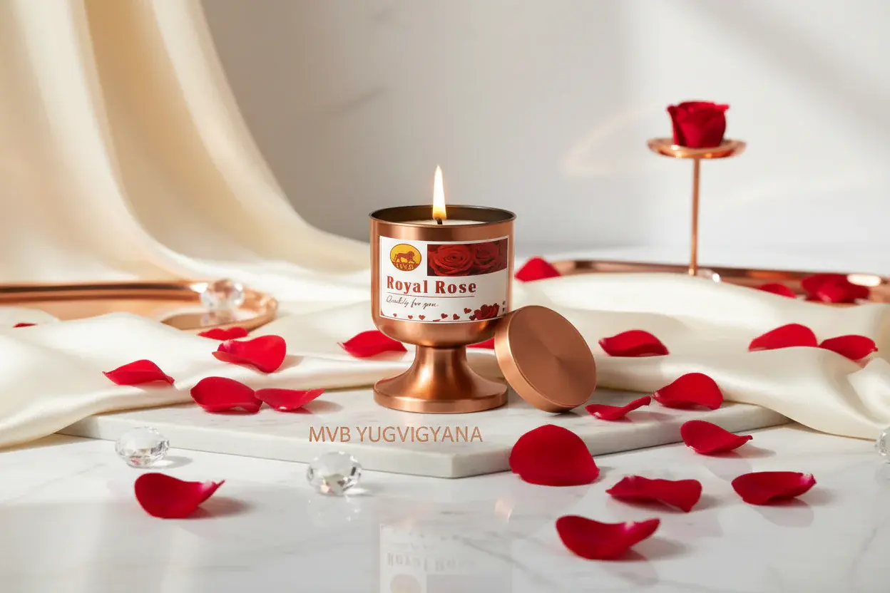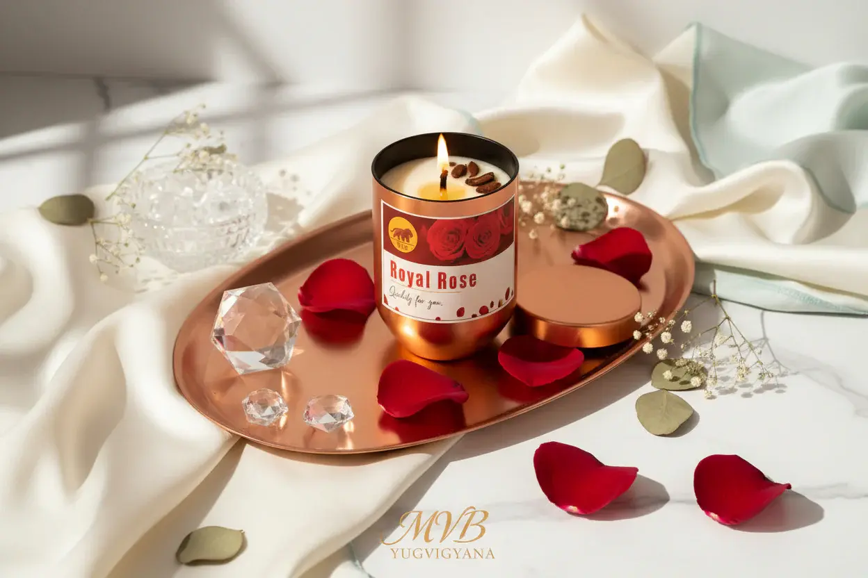 MVB Vegan Organic Hand-Poured Pure Soya Wax Candle – Rose in a Copper Metal Luxury Jar