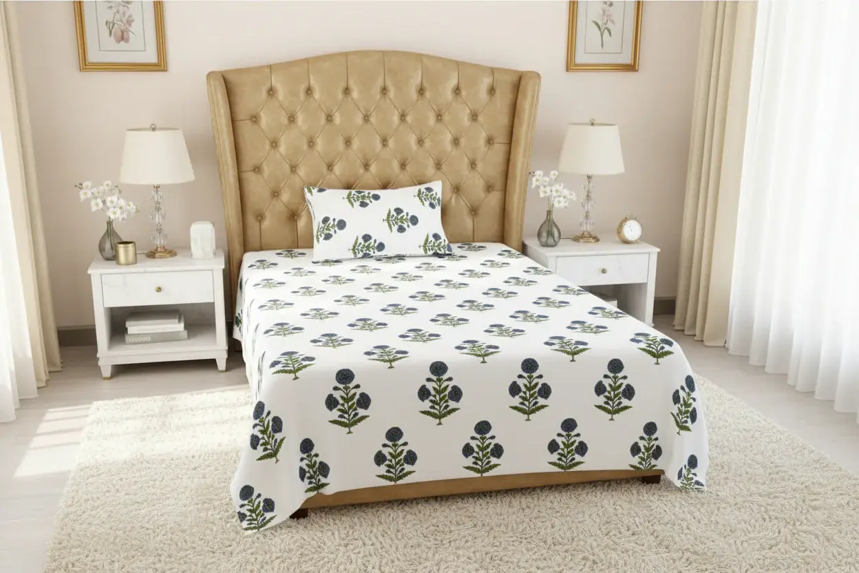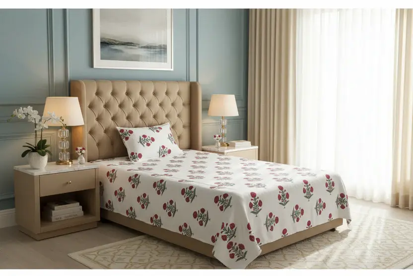 Experience the luxury of high-quality cotton with this premium single bed sheet set. Designed for both comfort and durability, this bed sheet boasts long-lasting color fastness and a lustrous finish that will keep your bed looking elegant and inviting. With a thread count of 240, this bed sheet offers softness and strength, making it perfect for daily use.