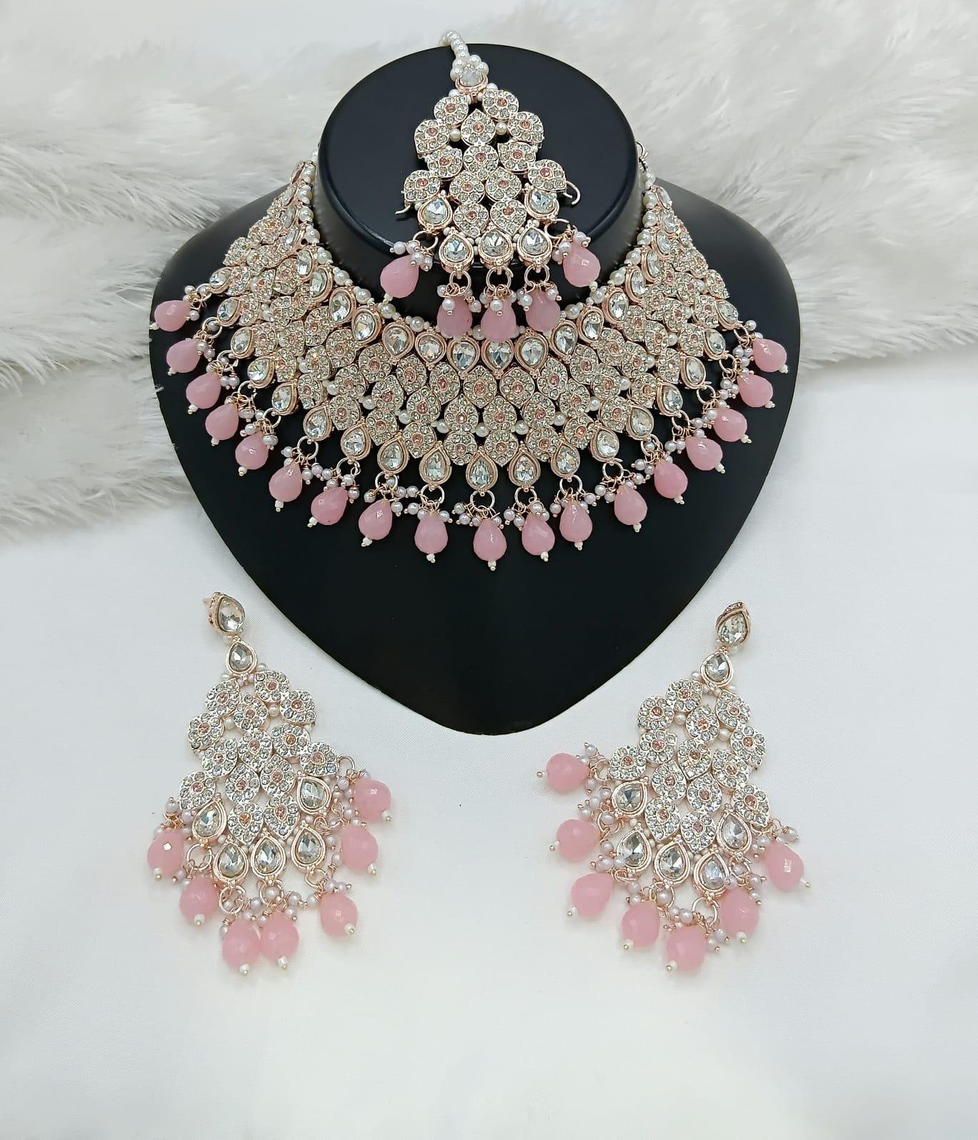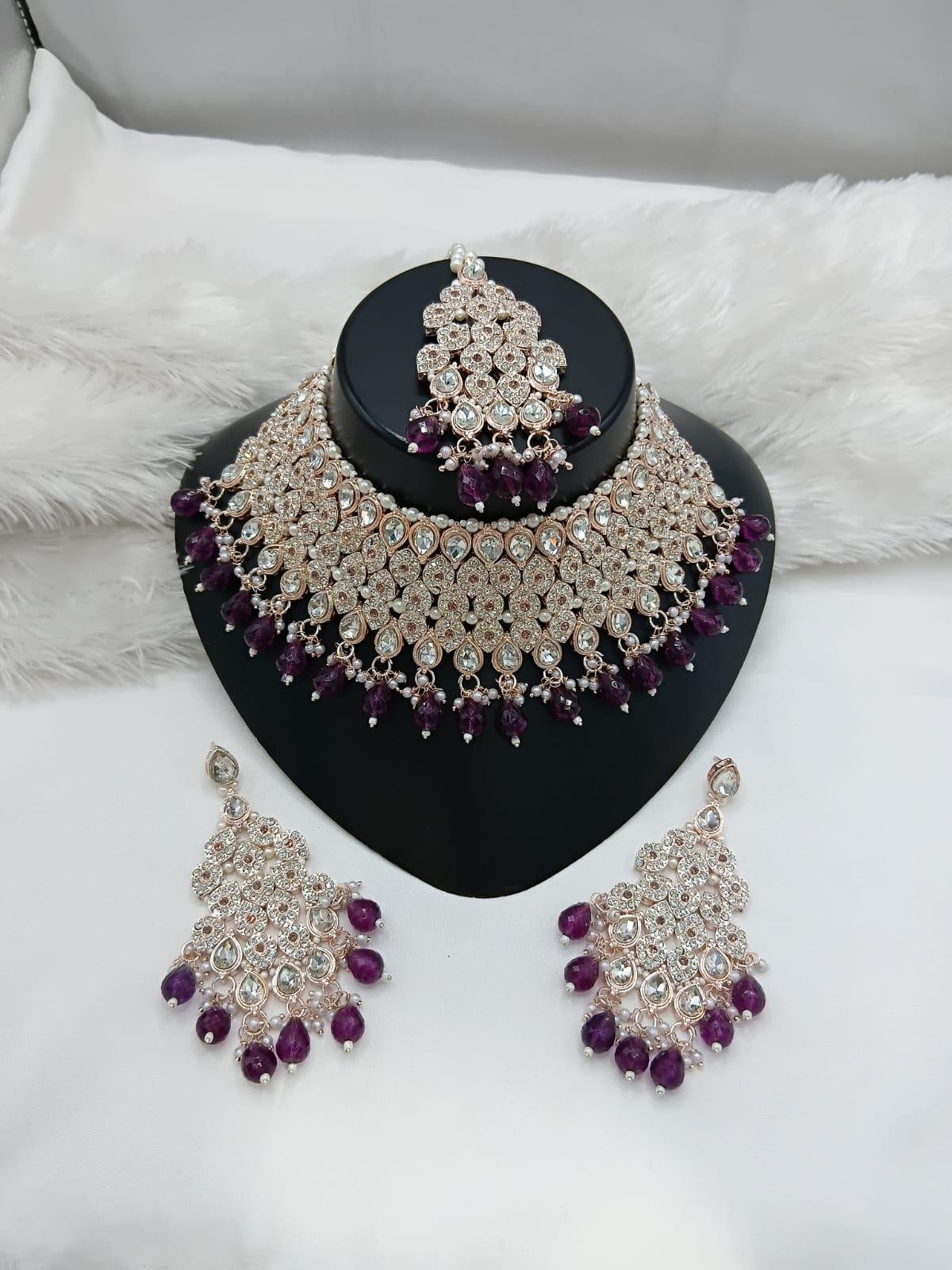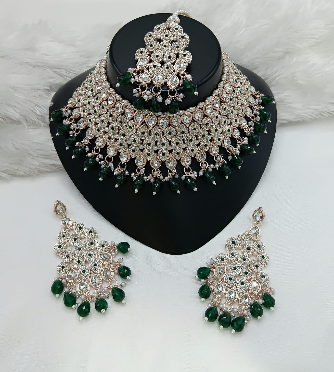 - Pair this necklace set with bridal lehengas, heavy sarees, or anarkali suits in shades of red, maroon, gold, ivory, or beige.