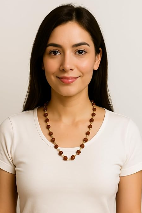 Rudraksha Mala Necklace | Natural Brown Beads with Gold-Tone Chain Links for Meditation