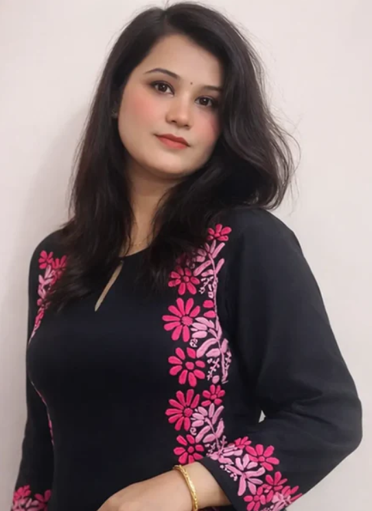 Make a bold yet elegant statement with this Black Chikankari Modal Kurti, beautifully handcrafted with vibrant pink floral embroidery by skilled artisans of Lucknow . The rich black base creates a striking contrast with the delicate pink Chikankari work, giving this kurti a graceful blend of modern style and traditional charm.