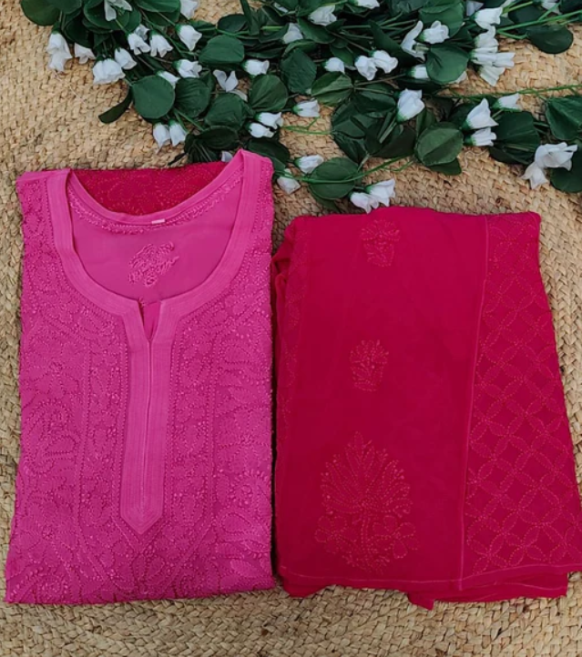 SANDHYA Fuschia Pure Viscose Chikankari Resham Omray 4pcs Set