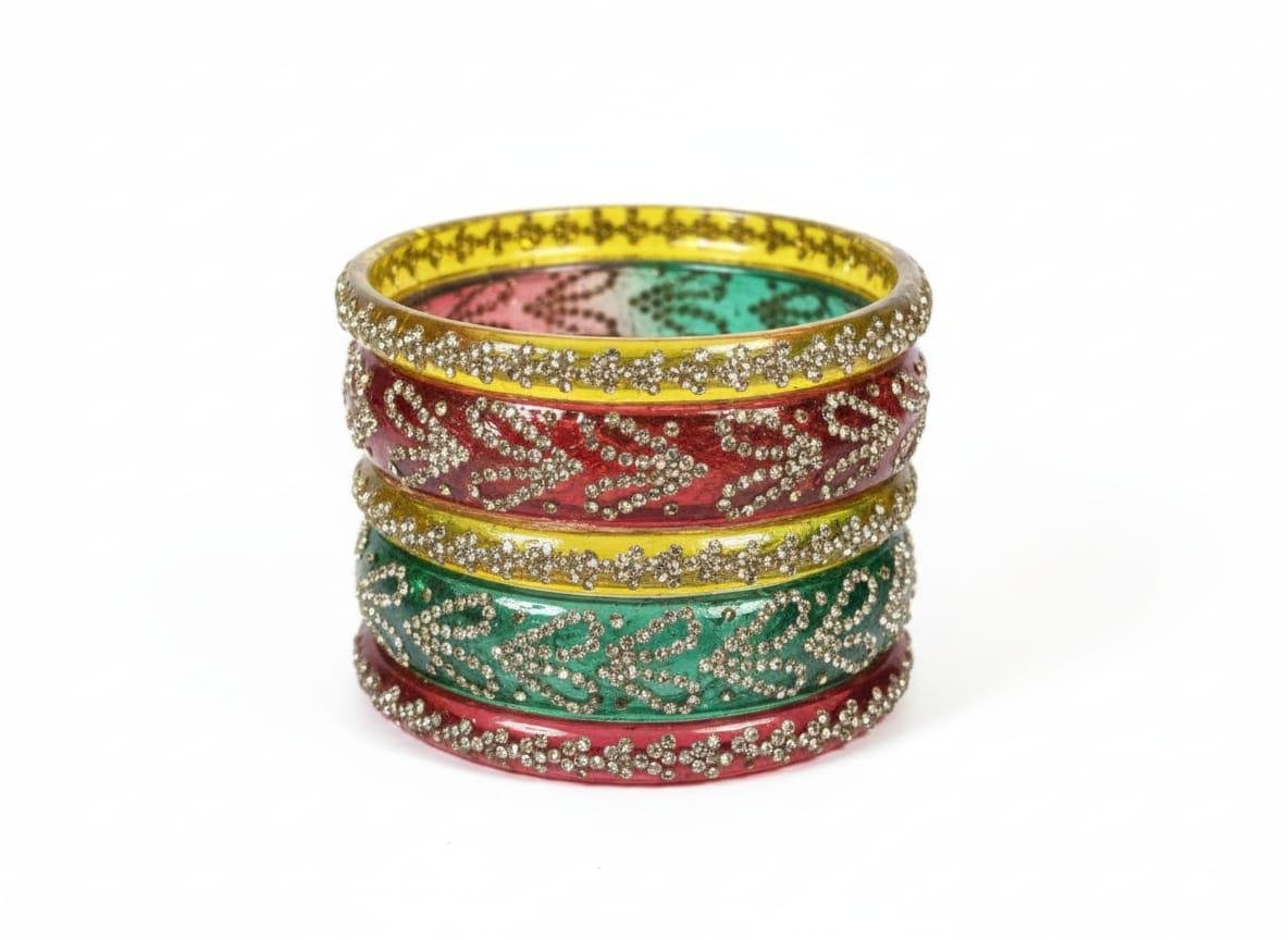 - PRIYA KANGAN Set Of 6 Multicoloured Glass Bangles β A lively set of 6 colorful glass bangles β lightweight and great with sarees, salwar suits, or lehengas for festivals and casual occasions.