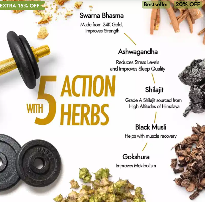 ✔ Shilajit extract (standardized for active compounds like fulvic acid)