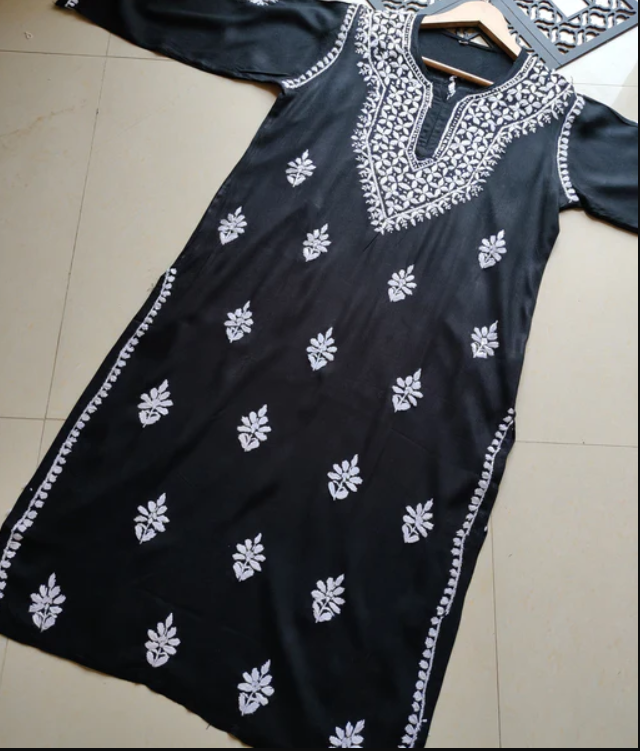 SHIVANI Black Modal Chikankari Kurta - Elegant Lucknowi Chikankari for Women