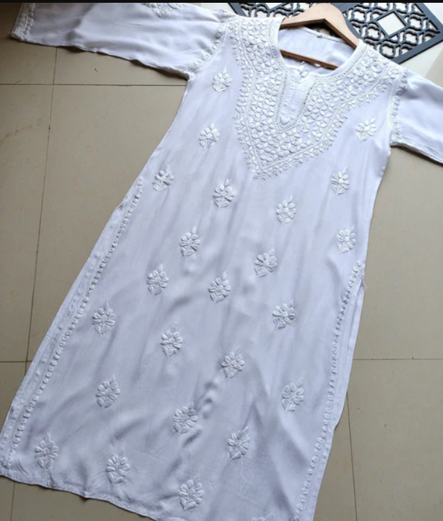 SHIVANI White Modal Chikankari Kurta Set