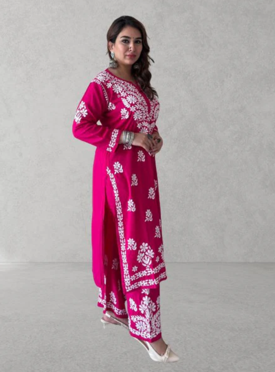 SHIVIKA Pink Pure Modal Chikankari Kurta Palazzo Set