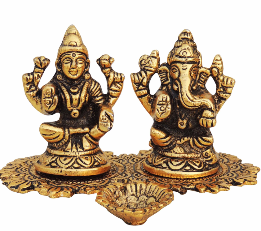 Showpiece Aluminium Laxmi Ganesh Deepak