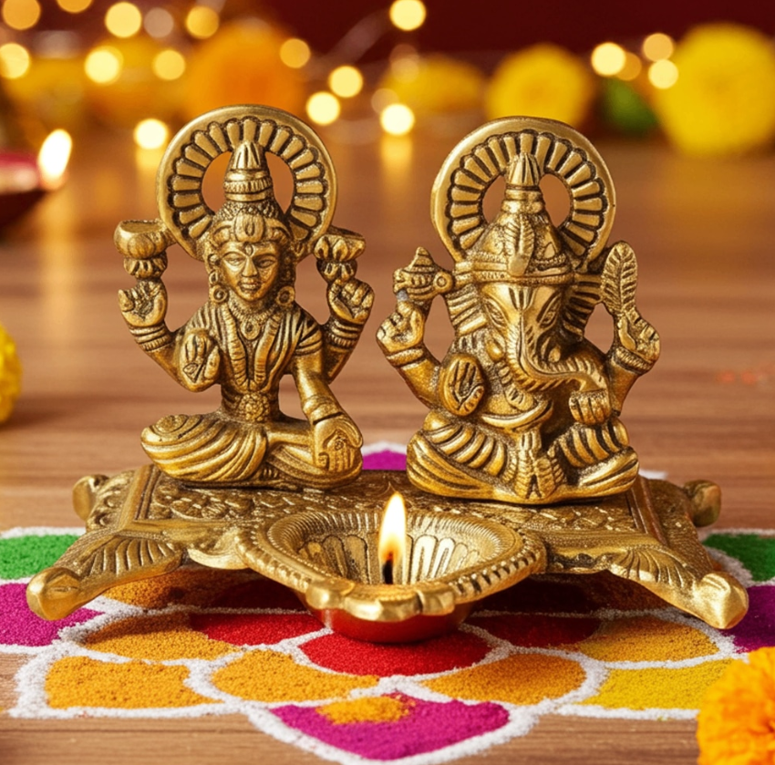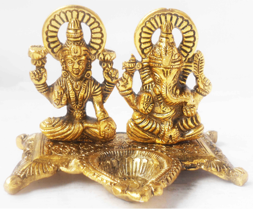 Showpiece Aluminium Laxmi Ganesh With Deepak