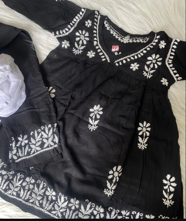 🌸 Handcrafted Chikankari Work: Intricate Lucknowi Chikankari embroidery showcasing skilled craftsmanship and traditional artistry.